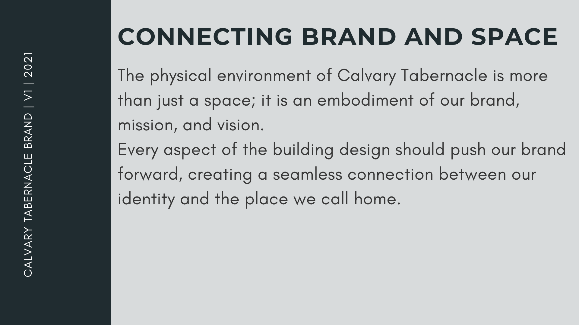 This Brand Guide was developed as part of the 2020 rebrand of Calvary Tabernacle. It offers comprehensive guidelines for aligning the church’s physical spaces, online presence, and media with its core identity and mission. The guide includes detailed instructions on visual elements, color palettes, design principles, and sub-ministry branding, ensuring a cohesive and impactful representation of Calvary Tabernacle. It serves as a vital resource for maintaining consistency and enhancing the community’s connection to the church’s vision of inspiring, growing, and equipping.